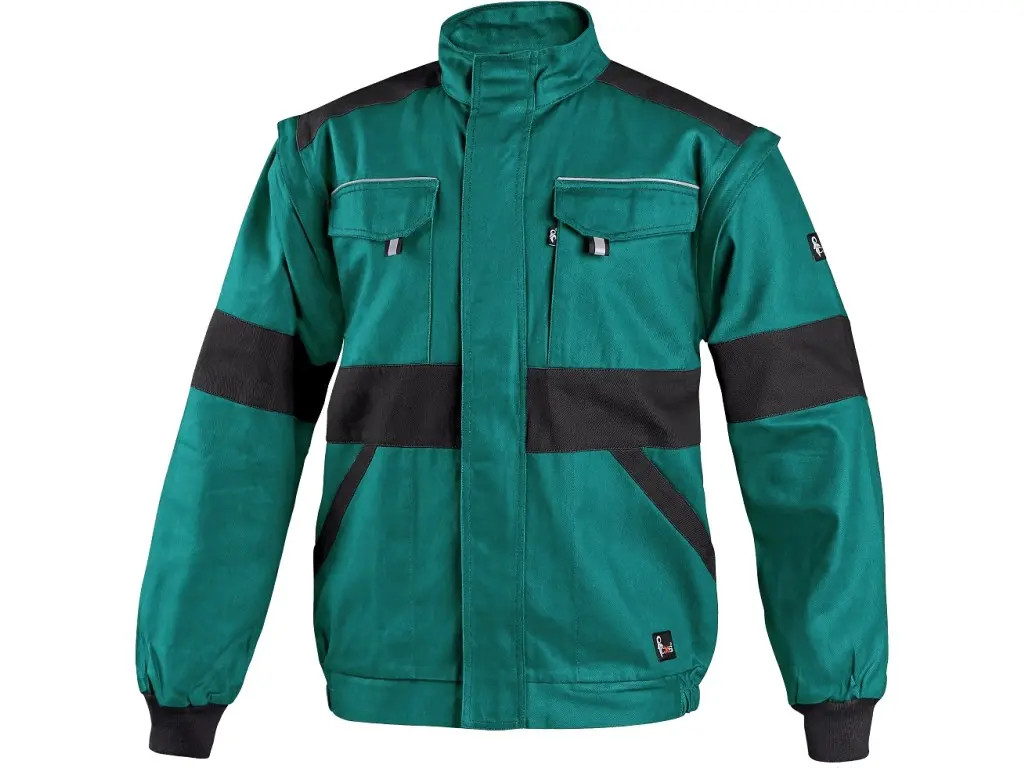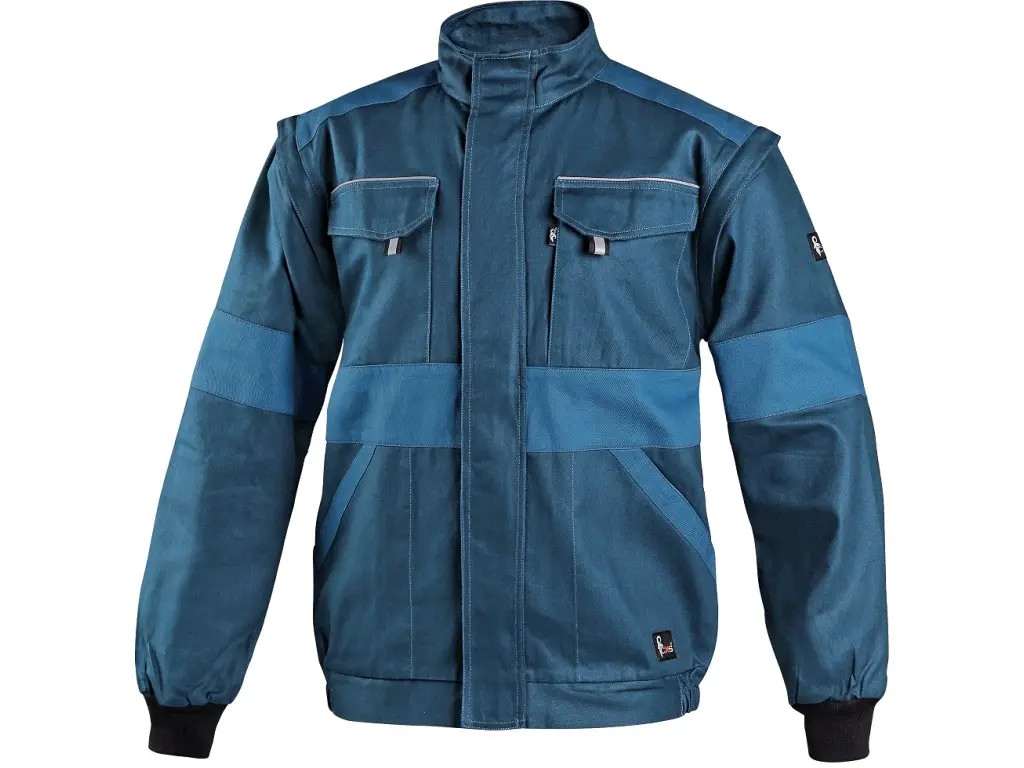 Pánská montérková blůza, odepínací rukávy s pružnou manžetou, kryté zapínání na zip a suché zipy, náprsní kapsy s klopami, skrytá náprsní kapsa na zip, jednoduché boční kapsy, spodní část na bocích do gumy, reflexní doplňky. Doporučené použití: stavebnictví, lehký průmysl, logistika, skladová manipulace, autoservisy, údržba, montáže, zemědělství, zahrada, hobby.