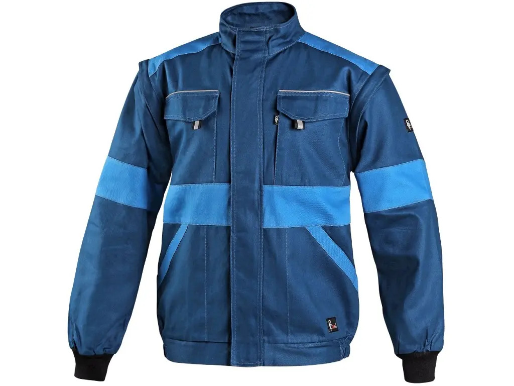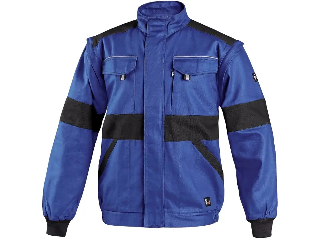 Pánská montérková blůza, odepínací rukávy s pružnou manžetou, kryté zapínání na zip a suché zipy, náprsní kapsy s klopami, skrytá náprsní kapsa na zip, jednoduché boční kapsy, spodní část na bocích do gumy, reflexní doplňky. Doporučené použití: stavebnictví, lehký průmysl, logistika, skladová manipulace, autoservisy, údržba, montáže, zemědělství, zahrada, hobby.