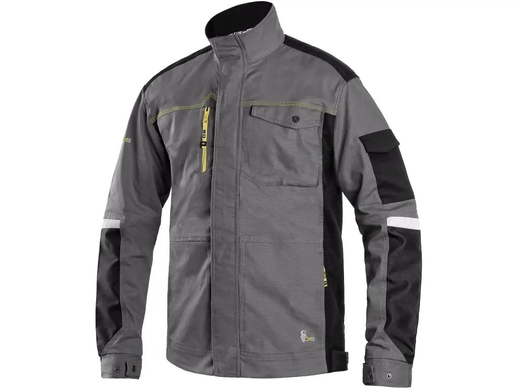 Pánská montérková blůza, strečová tkanina umožňující volný pohyb, ramena vyztužena 600D polyesterem, rukávy s nastavitelnou manžetou, kapsička s klopou na levém rukávu, kryté zapínání na zip a druky, náprsní kapsy - na druk a zip, boční kapsy na zip, regulovatelný pas, větrání na zádech, reflexní doplňky.