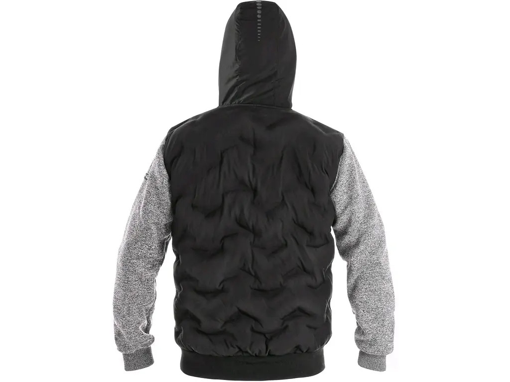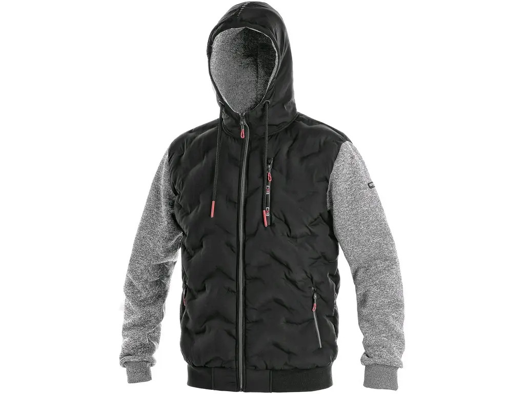 Pánská bunda z kombinovaných materiálů, zateplení v přední a zadní části bundy, fleecová podšívka, kapuce napevno, 2 spodní kapsy na zip, náprsní kapsa na zip, doplňky v kontrastních barvách, pas a rukávy ukončeny pružnou manžetou, vnitřní náprsní kapsa, reflexní doplňky.