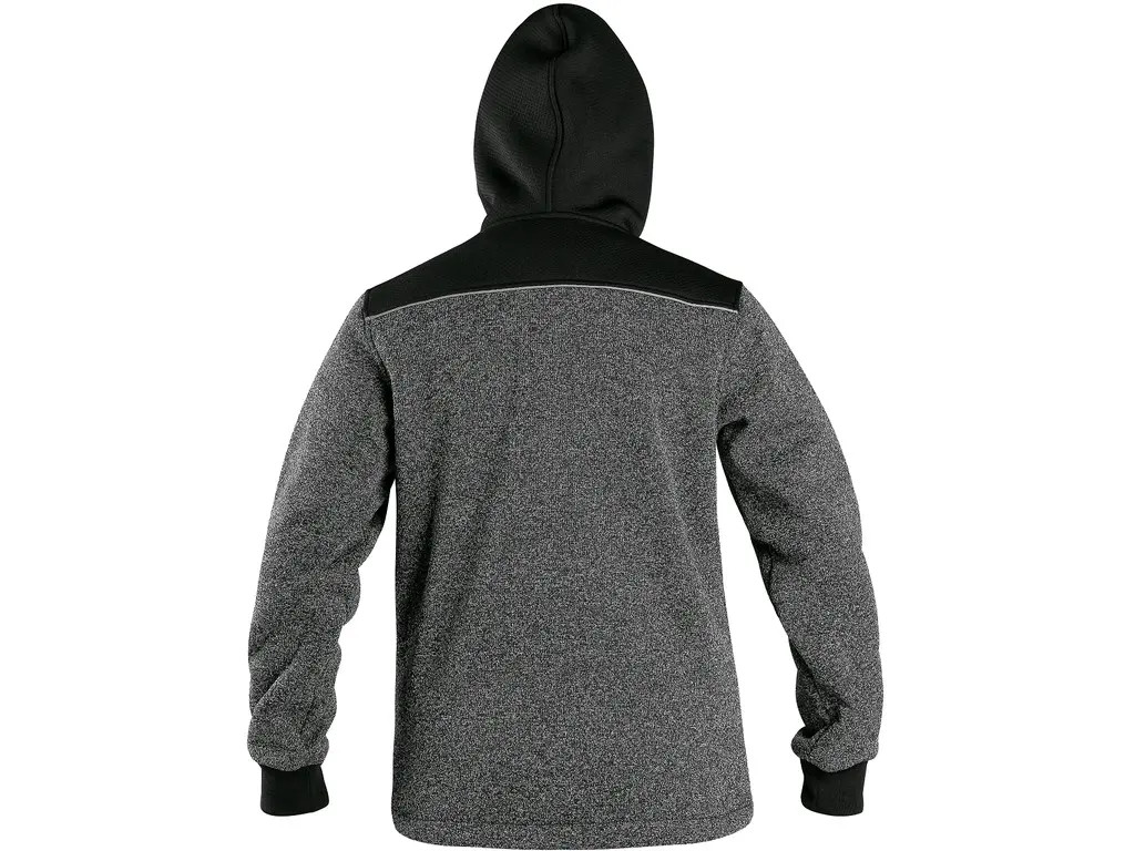 Dětská bunda z pleteniny, kombinace materiálů, kapuce napevno, doplňky v kontrastní oranžové barvě, stahování v dolním okraji, rukávy zakončeny pružnou manžetou, reflexní doplňky, 2 boční kapsy na zip.