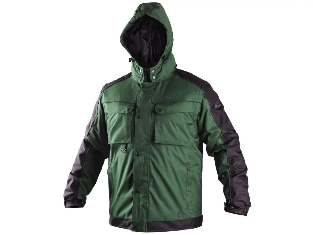 Pánská zateplená bunda 2 v 1, zapínaní na zip krytý légou, odepínací kapuce, fleecový límec, odepínací rukávy, regulovatelné manžety na rukávech, plastové poutko pod pravou náprsní kapsou, stahování v dolním okraji, lepené švy, reflexní doplňky. Kapsy: 4 náprsní kapsy (2 na zip), 2 spodní kapsy na zip, 2 vnitřní kapsy.