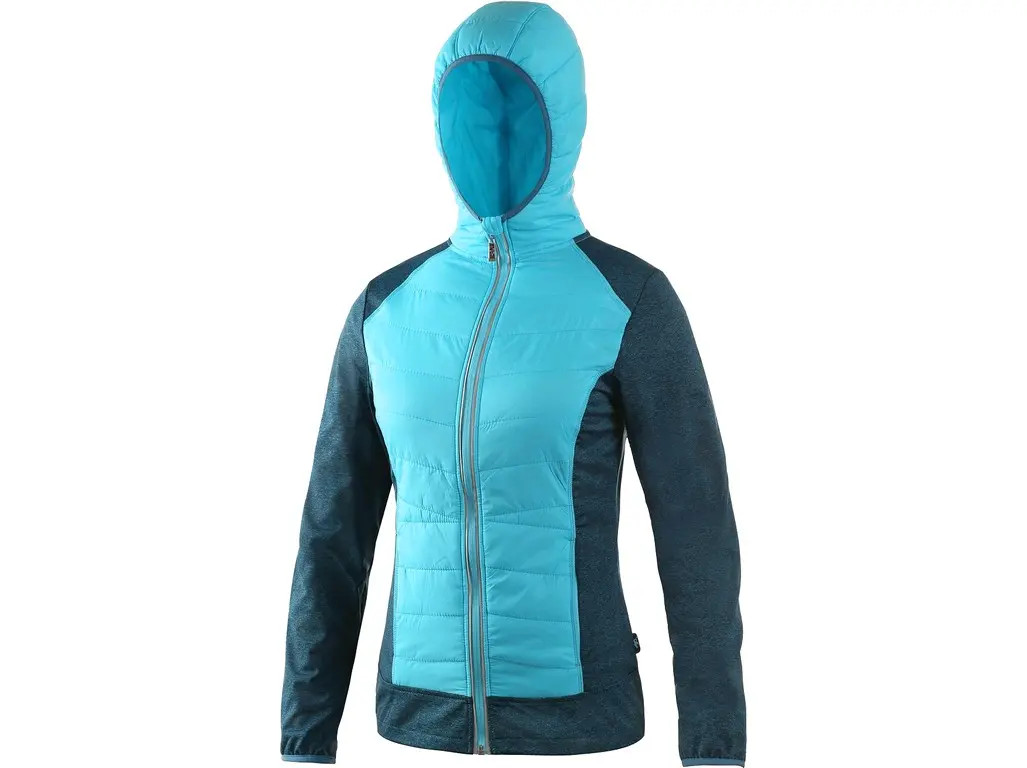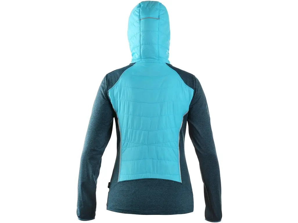 Dámská vycházková bunda z kombinovaných materiálů. Bunda má zapínání na zip, rukávy do gumičky, 2 boční kapsy na zip a reflexní doplňky.
