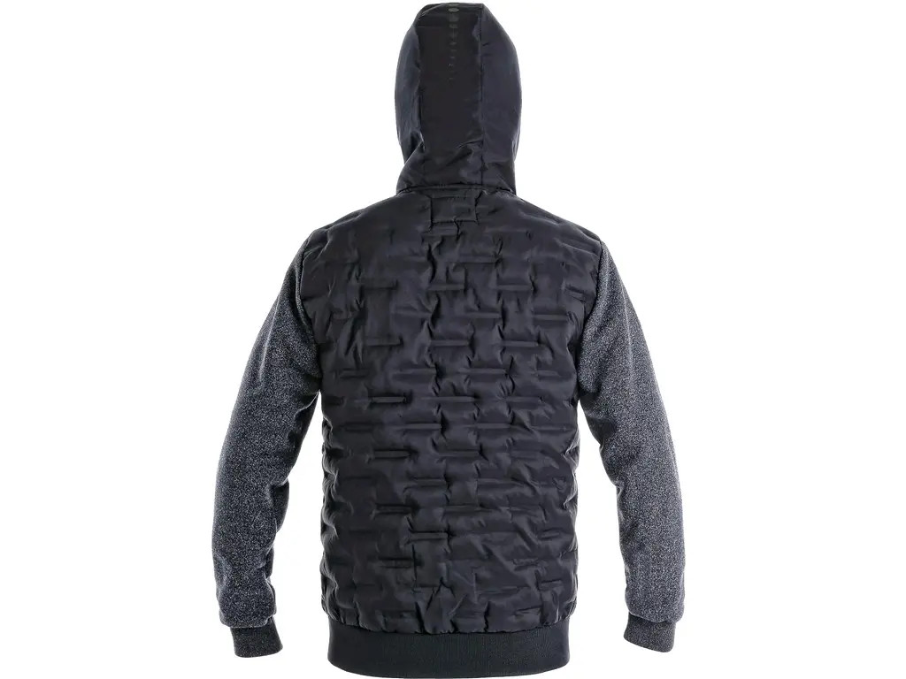 Dětská bunda z kombinovaných materiálů, zateplení v přední a zadní části bundy, kapuce napevno, 2 boční kapsy na zip, doplňky v kontrastních barvách, pas a rukávy ukončeny pružnou manžetou, reflexní doplňky.