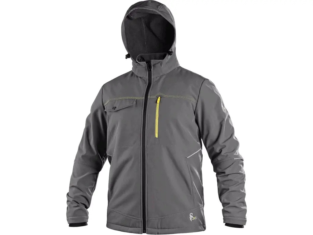 Pánská softshellová bunda, odolná proti vodě a větru, odepínací kapuce, větrání v podpaží, náprsní kapsy - na druk a zip, boční kapsy na zip, vnitřní manžety v rukávech, stahování v dolním okraji, reflexní doplňky, vnitřní náprsní kapsa, TPU membrána. Odolnost materiálu proti průniku vody 5 000 mm mimo oblast švů, paropropustnost 5 000 g/m2/24 h. Podšívka kombinovaná s fleecem.