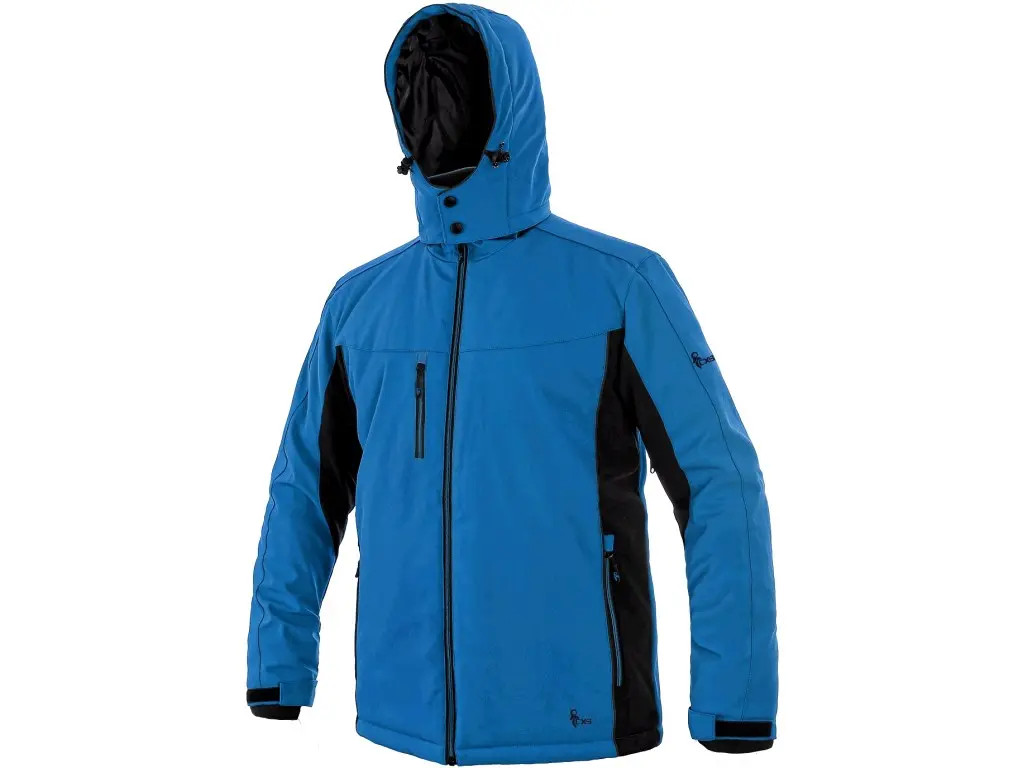 Pánská zateplená softshellová bunda, odolná proti vodě a větru, větrání v podpaží, odepínací kapuce, regulovatelná manžeta na rukávech a pružná manžeta v rukávech, stahování v dolním okraji, černé reflexní výpustky, TPU membrána, odolnost materiálu proti průniku vody 10 000 mm mimo oblast švů, paropropustnost 3 000 g/m2/24 h, podšívka je kombinací materiálů s fleecem, na levém spodním rukávu kapsička na zip, 2 spodní kapsy na zip, vnitřní kapsa.