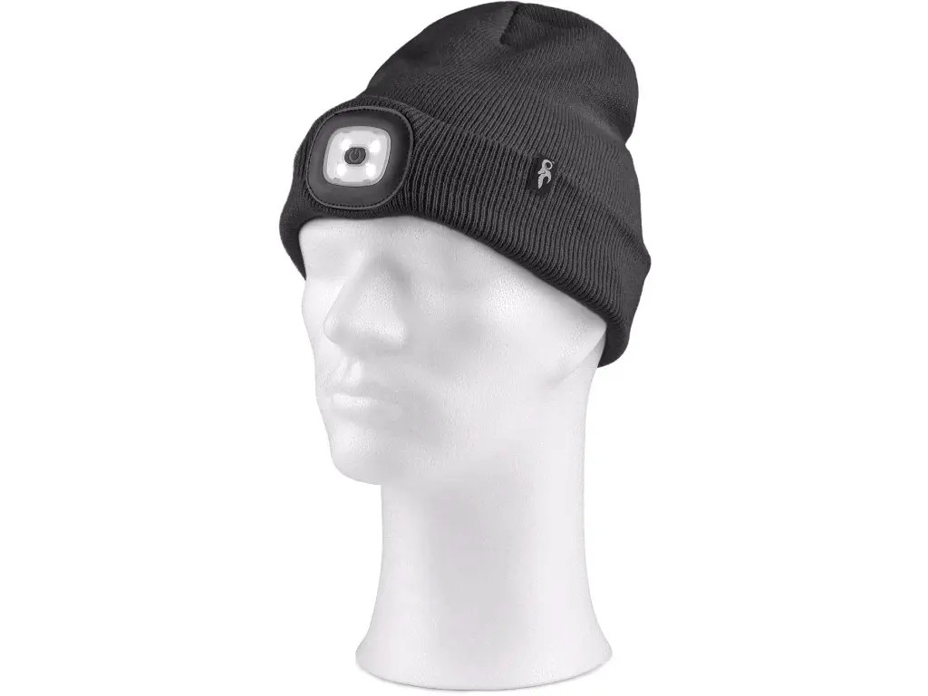 Zimní pletená čepice s LED světlem, dvojitá vrstva. 3 režimy svícení. Doba svícení 1 - 8 hodin v závislosti na režimu. Nabíjení přes USB zástrčku.