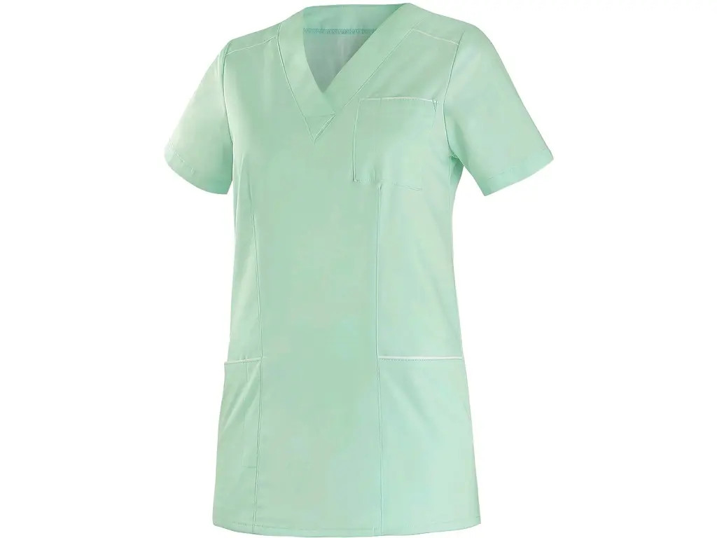 Dámská halena pohodlného střihu s kontrastními bílými výpustky. Náprsní kapsa s menší kapsou na tužku, 2 spodní kapsy. Doporučené použití: soukromé ordinace, kliniky a velká zdravotnická zařízení, záchranné a zdravotní dopravní služby, lázeňská zařízení, ústavy sociální péče, lékárny, školy se zdravotnickým zaměřením.