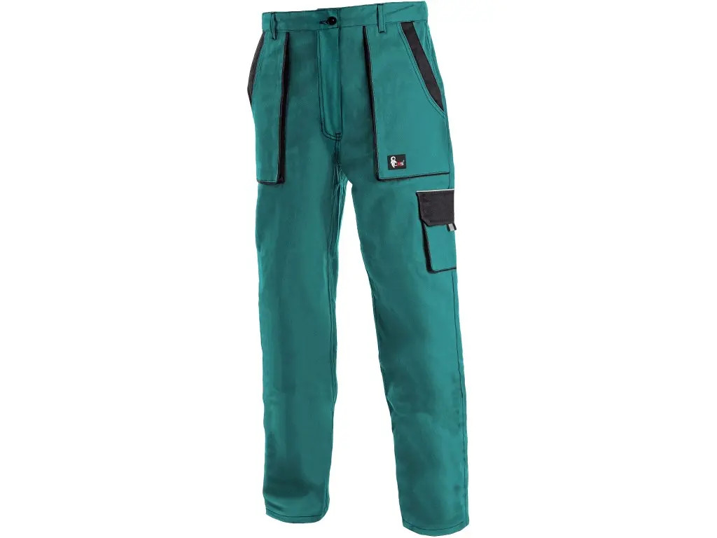 Dámské montérkové kalhoty, pas s poutky na opasek, vzadu do gumy, přední kapsy, boční kapsa na svinovací / skládací metr, boční kapsa na mobil / peněženku, zadní kapsa s klopou, reflexní doplňky. Doporučené použití: stavebnictví, lehký průmysl, logistika, skladová manipulace, autoservisy, údržba, montáže, zemědělství, zahrada, hobby.