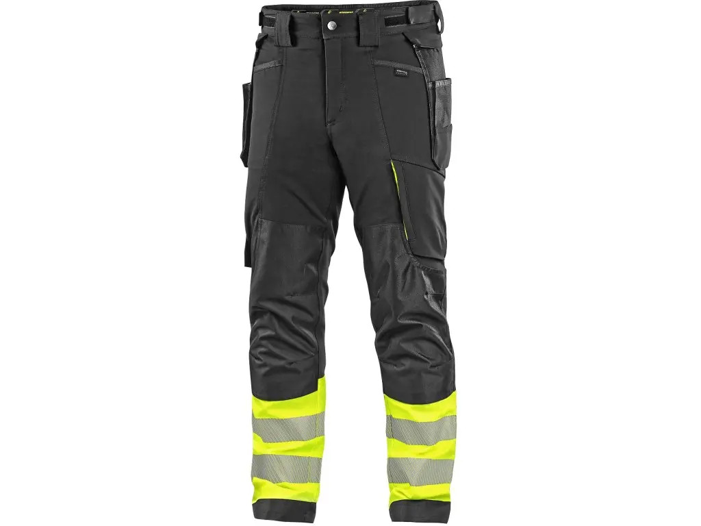 Pánské montérkové kalhoty s užším moderním střihem nohavic s kontrastními barevnými a reflexními doplňky. Konstrukce 4-way stretch umožňuje roztahování materiálu ve všech čtyřech směrech a tím i snadný a volný pohyb. Vysoké procento nylonu zaručuje schopnost rychlého schnutí. Vybavení kalhot: flexibilní pas s možností upravení velikosti a poutky na opasek, 2 přední kapsy, 2 odnímatelné kapsy na nářadí vyztuženy materiálem CORDURA®, zipová kapsa na stehně s odnímatelným pouzdrem na ID kartu, multifunkční boční kapsa, 2 zadní kapsy ve spodní části vyztuženy materiálem CORDURA®, zipová ventilace v zadní části stehen, kolena zesílena materiálem CORDURA® s možností vložení kolenních výztuh, spodní část nohavic vyztužena materiálem CORDURA®. Kalhoty jsou vybaveny EASY-PROLONG systémem, který umožňuje snadné prodloužení střihu na vyšší postavu uvolněním švu na nohavicích. Doporučené použití: strojírenství, stavebnictví, lehký průmysl, automobilový průmysl, logistika, skladování, spedice, autoservisy, údržba, montáže, zemědělství, zahrada, hobby a volný čas.