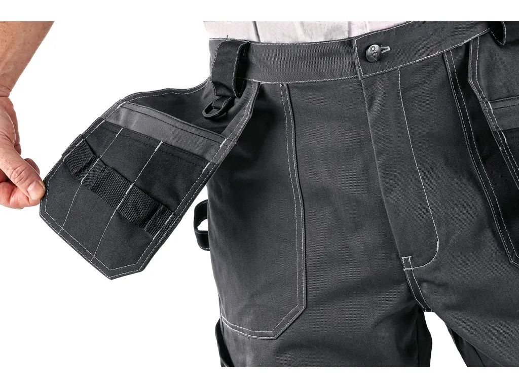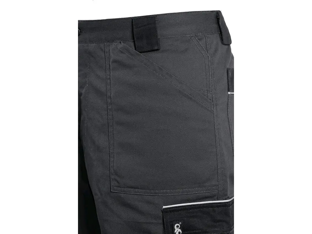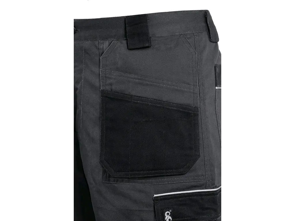 Pánské montérkové kalhoty, pas s poutky na opasek, vzadu do gumy, přední volně visící kapsy na nářadí s možností vložení do kapes, multifunkční kapsy na obou stranách, kolena zesílena 600D polyesterem s možností vložení kolenních výztuh, dvě zadní kapsy, jedna na suchý zip, reflexní doplňky. Doporučené použití: stavebnictví, strojírenství, lehký průmysl, automobilový průmysl, logistika, skladová manipulace, spedice, autoservisy, údržba, montáže, zemědělství, zahrada, hobby.