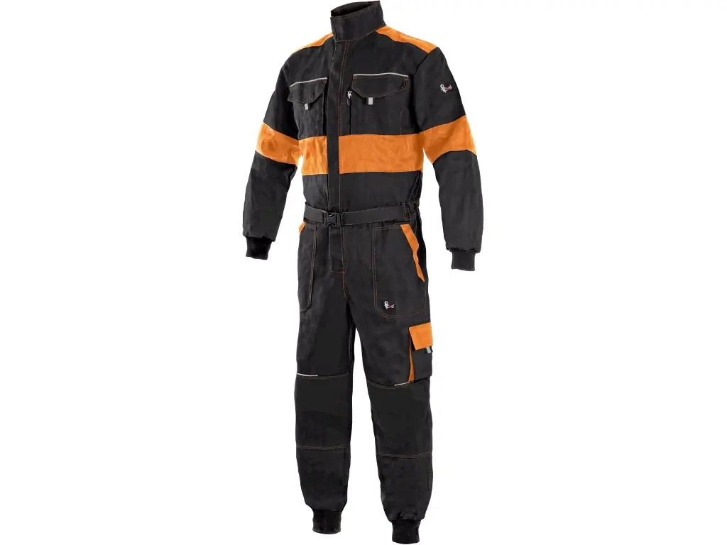 Pánská montérková kombinéza, kryté zapínání na zip a suché zipy, dvoucestný zip, rukávy s pružnou manžetou, náprsní kapsy s klopami, skrytá náprsní kapsa na zip, přední kapsy, boční kapsa na svinovací / skládací metr, boční kapsa na mobil / peněženku, zdvojená kolena, pruženka v bederní části, zadní kapsa s klopou, reflexní doplňky. Doporučené použití: stavebnictví, lehký průmysl, logistika, skladová manipulace, autoservisy, údržba, montáže, zemědělství, zahrada, hobby.