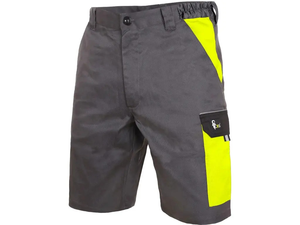 Pánské montérkové kraťasy z lehkého materiálu, pas s poutky na opasek a gumou v bocích, přední klínové kapsy, boční kapsa s klopou, kapsa na skládací/svinovací metr, zadní jednoduchá kapsa na pravé straně, reflexní doplňky. Doporučené použití: letní pracovní oděv, stavebnictví, strojírenství, lehký průmysl, automobilový průmysl, logistika, skladová manipulace, spedice, autoservisy, údržba, montáže, zemědělství, učiliště, zahrada, hobby.
