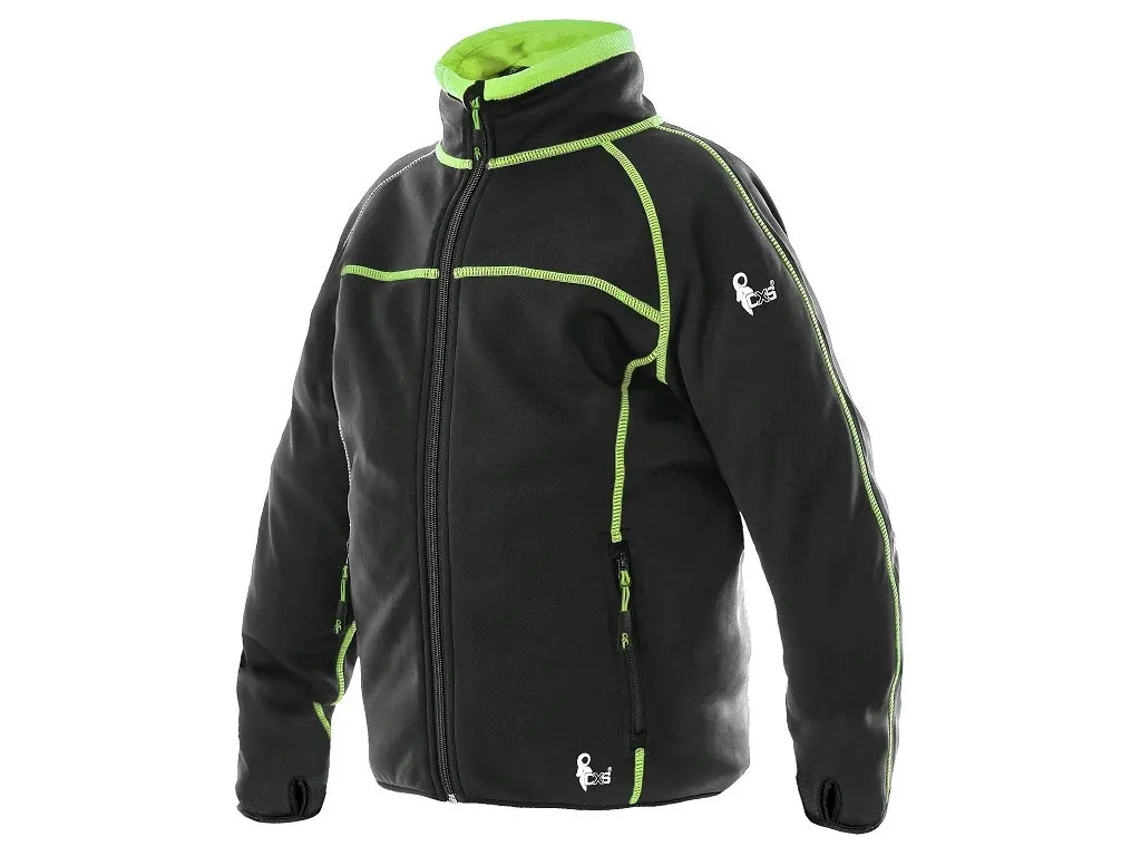 Dětská mikina na zip s barevným fleecovým límcem a sladěným prošíváním, příjemně vypasovaná, 2 přední kapsy na zip, reflexní doplňky. Na rukávu se nachází otvor na palec.