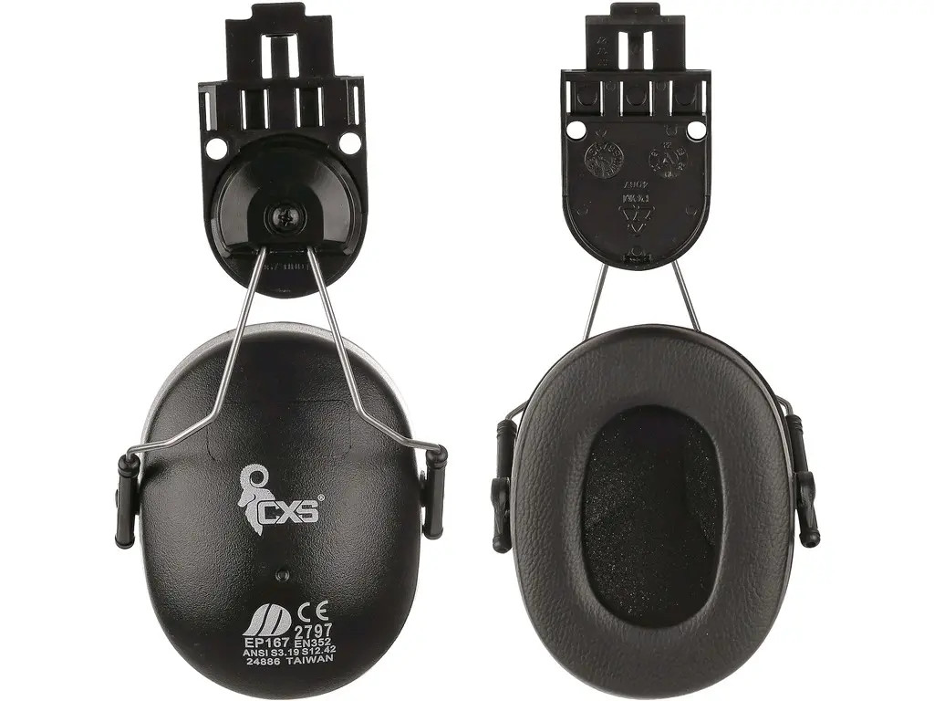 Mušlové polstrované chrániče sluchu s univerzálními úchyty na přilbu. Možnost použití s přilbou CXS STAVBAŘ. Útlum zvuku 25,9 dB. Doporučené použití: zemědělství, strojírenství, stavebnictví.