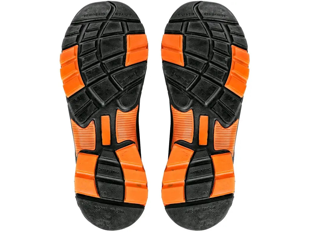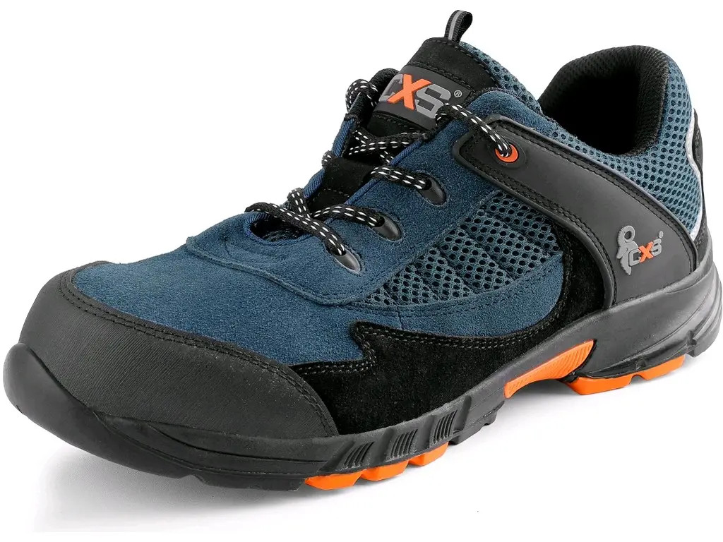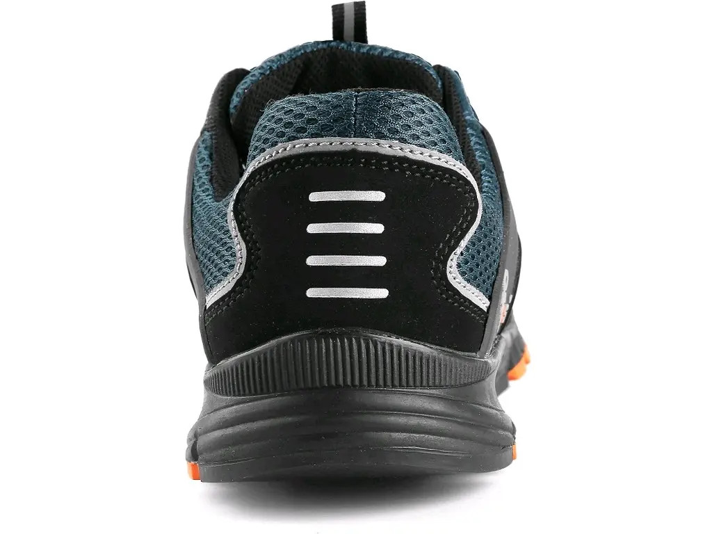 Bezpečnostní polobotka s ocelovou špicí, reflexní doplňky. Materiál: svršek z 1,4 - 1,6 mm hovězí broušené kůže kombinovaný s prodyšnou tkaninou, podšívka z prodyšné oděru odolné textilie, podešev: gumová, olejivzdorná, antistatická, protiskluzová.