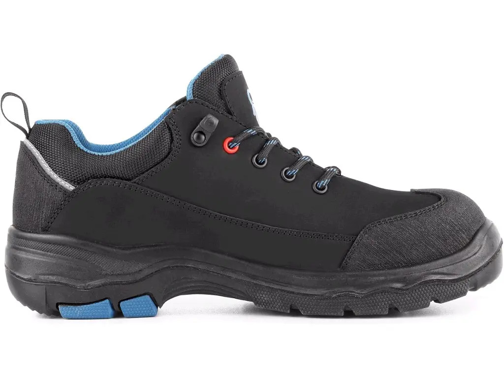 Bezpečnostní polobotka s kompozitní špicí a textilní antipenetrační stélkou, reflexní doplňky. Materiál: svršek z 1,8 - 2 mm hydrofobní hovězí lícové kůže, vnější TPU ochrana okopu odolná proti odírání dle SC (Scuff cap), ochrana paty ze strukturovaného TPU, podšívka: prodyšná tkanina s dobrými absorpčními vlastnostmi, vnitřní zesílení paty oděruvzdorným PU, pohodlná vyjímatelná vložka z pleteniny, PU a měkkého ETPU s tlumícím efektem, podešev: protiskluzová, antistatická, olejivzdorná, odolná proti propichu a kontaktnímu teplu do 300 °C.