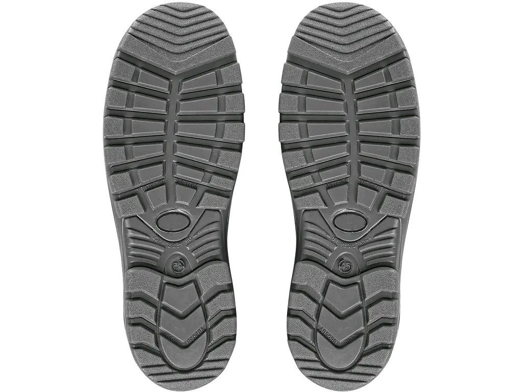 Pracovní polobotka, kožená, s reflexními doplňky. Materiál: svršek z 1,4 - 1,6 mm broušené kůže kombinované s 1,6 - 1,8 mm hladkou štípenkou s PU filmem, polstrovaný textilní límec, prodyšná a oděru odolná mesh podšívka, vyjímatelná, pohodlná a anatomická vložka z polyesteru, podešev: PU-PU, protiskluzová, antistatická, olejivzdorná.