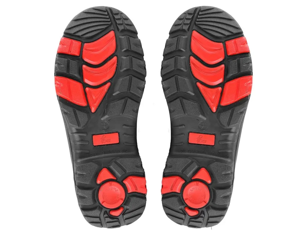 Kotníková bezpečnostní obuv, kožená, s plastovou špicí a planžetou Dyna-Flex, reflexní doplňky. Materiál: svršek z 1,6 - 1,8 mm kvalitní hydrofobní hladké hovězí kůže, bez kovových součástí, prodyšná a oděruvzdorná textilní podšívka, podešev: PU-guma, protiskluzová, antistatická, olejivzdorná, odolná proti propichu a kontaktnímu teplu do 300 °C.