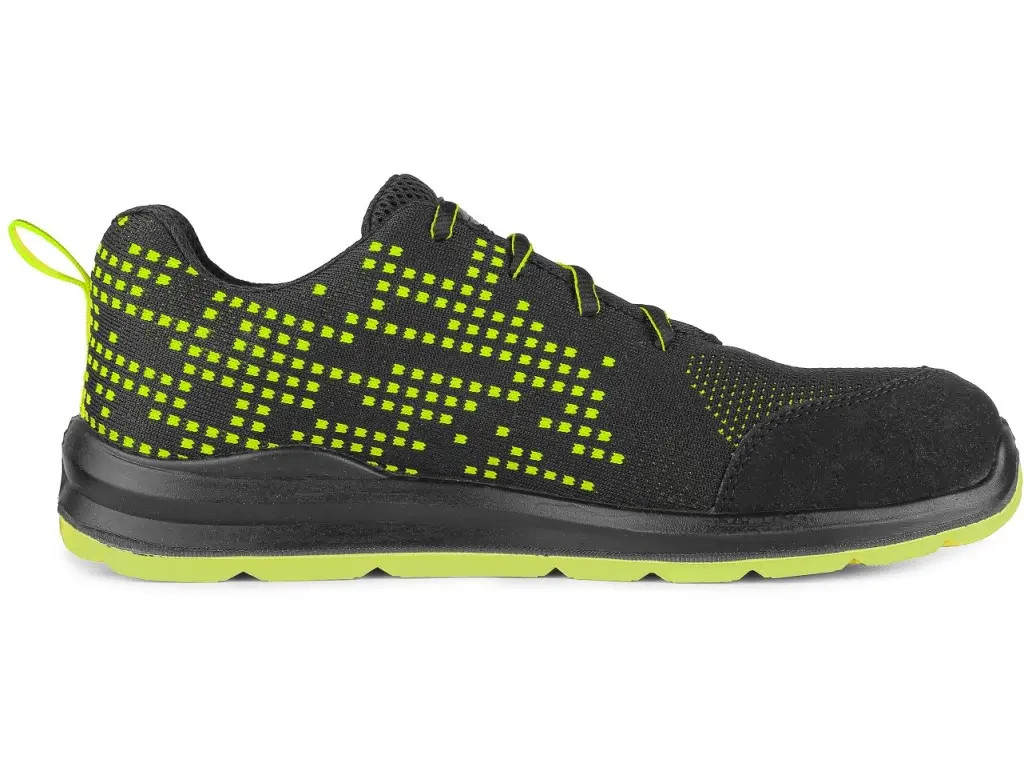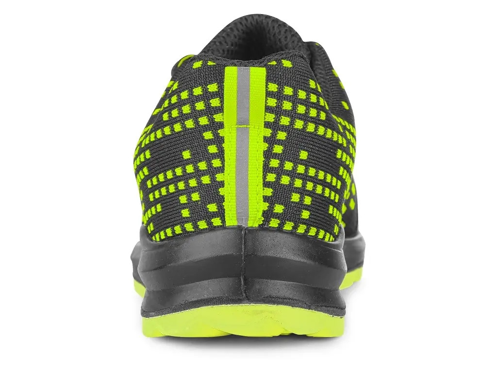 Textilní polobotka s reflexními doplňky. Materiál: svršek z odolného 1,8 - 2,0 mm polyesteru pratelného do 30 °C, přední část zesílena mikrovláknem, 3-vrstvá prodyšná textilní podšívka, PU-PU, podešev: PU-PU, protiskluzová, olejivzdorná, antistatická.