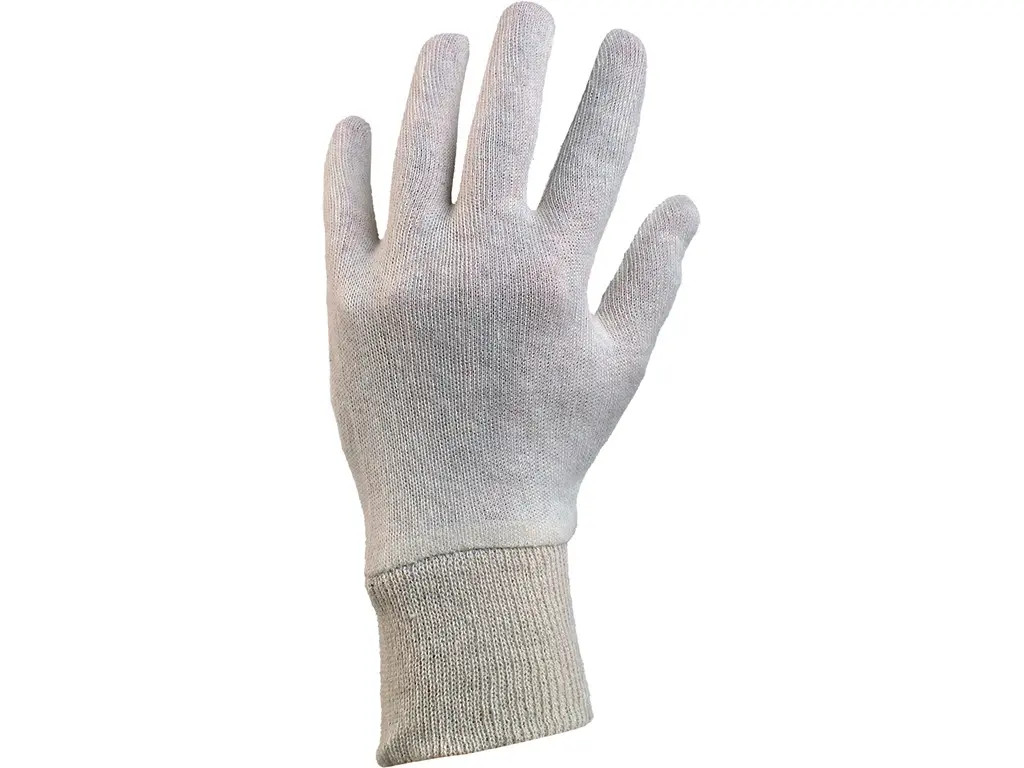 Textilní šité rukavice ze směsového režného úpletu s našitou pružnou úpletovou manžetou. Doporučené aplikace: skladování, manipulace s lehkým a drobným materiálem, vložka do jiných rukavic, lehká montáž.