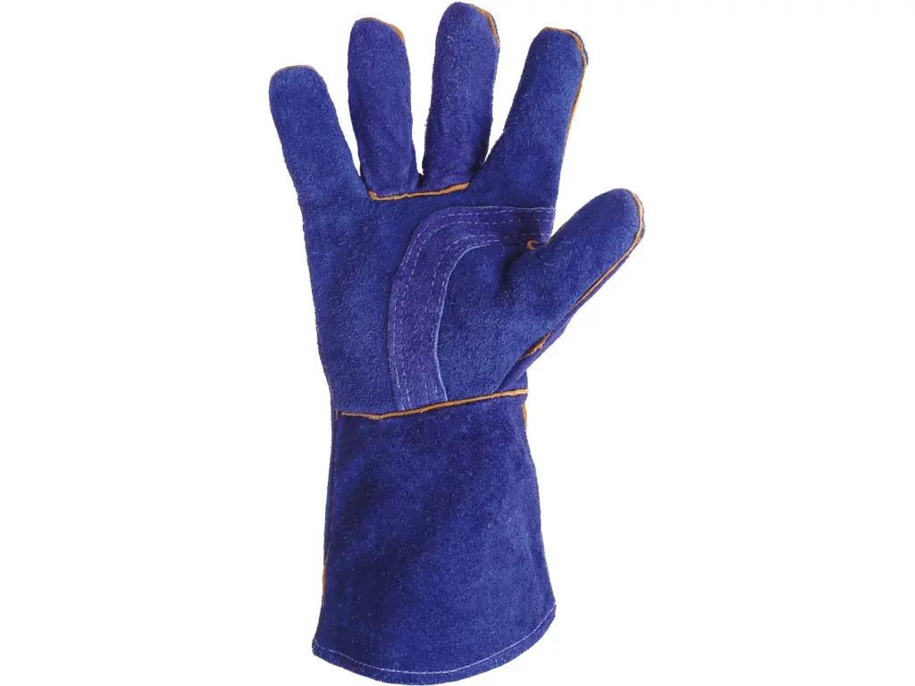 Svářecí rukavice s bavlněnou vložkou v dlani, švy kryté žlutou kůží a šité kevlarovou nití, zesílená dlaň. Doporučené aplikace: kovovýroba, svářeči, paliči, strojírenství a těžký průmysl.