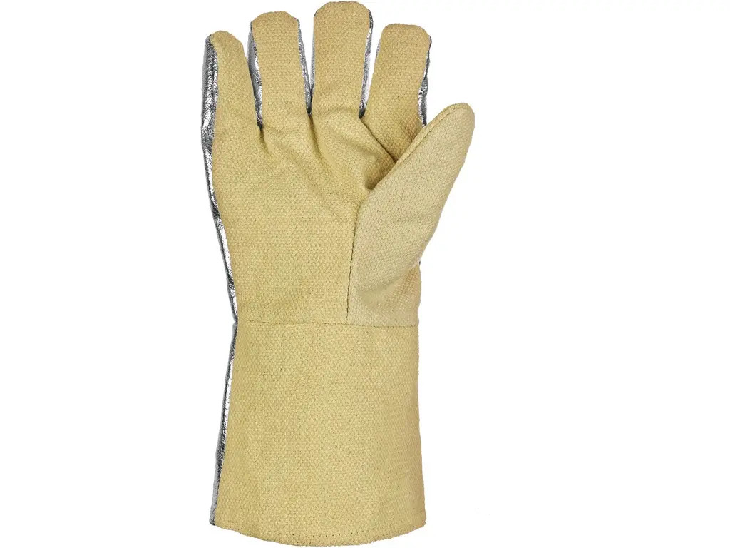 Teplu odolné třívrstvé rukavice. Horní vrstva z aramidové a pohliníkované tkaniny plní ochrannou funkci proti mechanickým a tepelným rizikům, švy na svrchní vrstvě provedeny Kevlar® nití. Střední vrstva je z vlněné textilie pro ochranu proti tepelným rizikům a vnitřní vrstvu tvoří bavlněná textilie pro hygienickou funkci. Ochrana před sálavým teplem a odstřikem taveniny do 500°C.