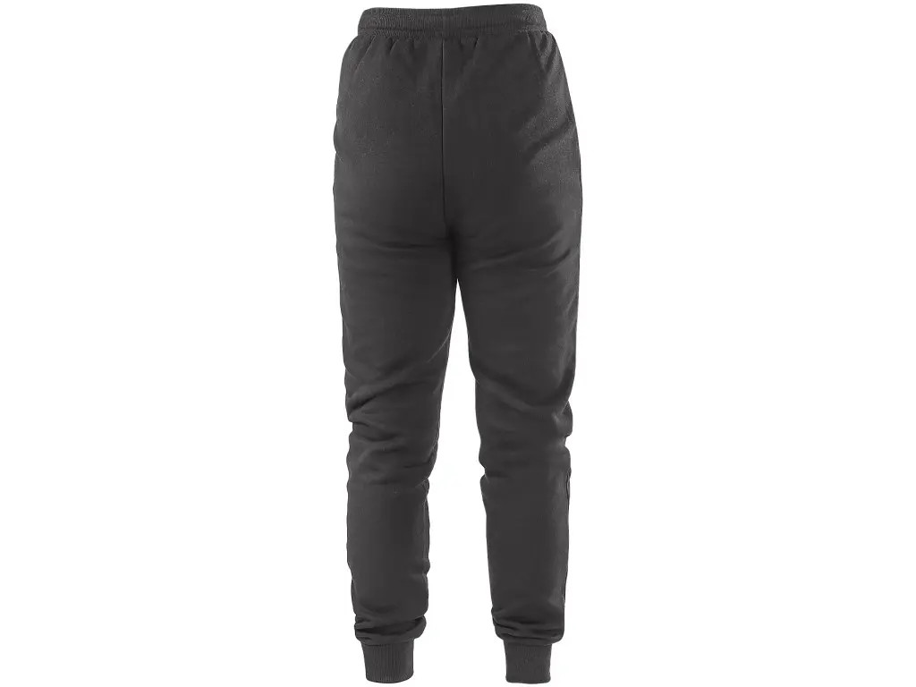 Dětské tepláky, pas a nohavice z žebrové pruženky, 2 přední kapsy na zip, vnitřní strana z fleecu.